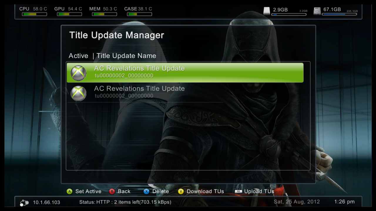 Selectati "Manage Title Updates" si apasati A. Se va deschide o noua fereastra: